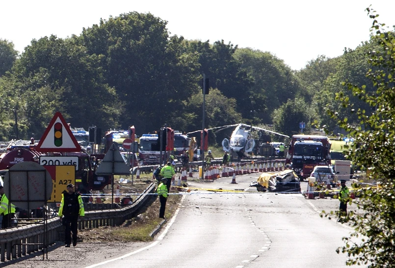 Podczas pokazów lotniczych pod Brighton w południowej Anglii doszło do katastrofy w której zginęło co najmniej 7 osób. Powodem było rozbicie się historycznego modelu odrzutowca z lat 50 zeszłego wieku, który spadł na ruchliwą szosę.