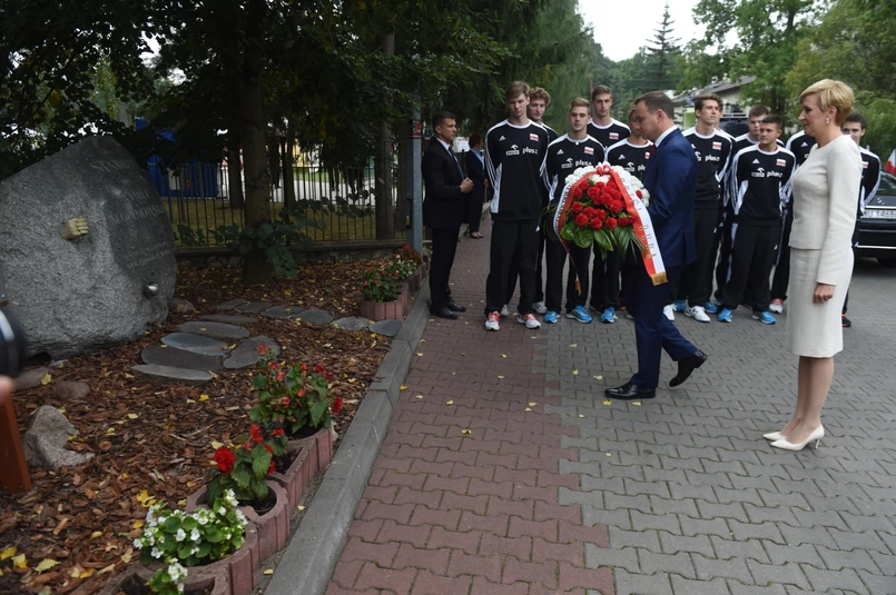 Uroczystość złożenia pamiątkowego wieńca trwała kilka minut. Na miejsce Andrzej Duda przybył wraz ze swoja małżonką, Agatą. Para odebrała kwiaty z rąk młodzieżowej reprezentacji Polski w siatkówce, która przybywa w Spale na zgrupowaniu. Na koniec krótkiej uroczystości, prezydent przywitał się z młodymi sportowcami oraz pozował do pamiątkowych zdjęć.