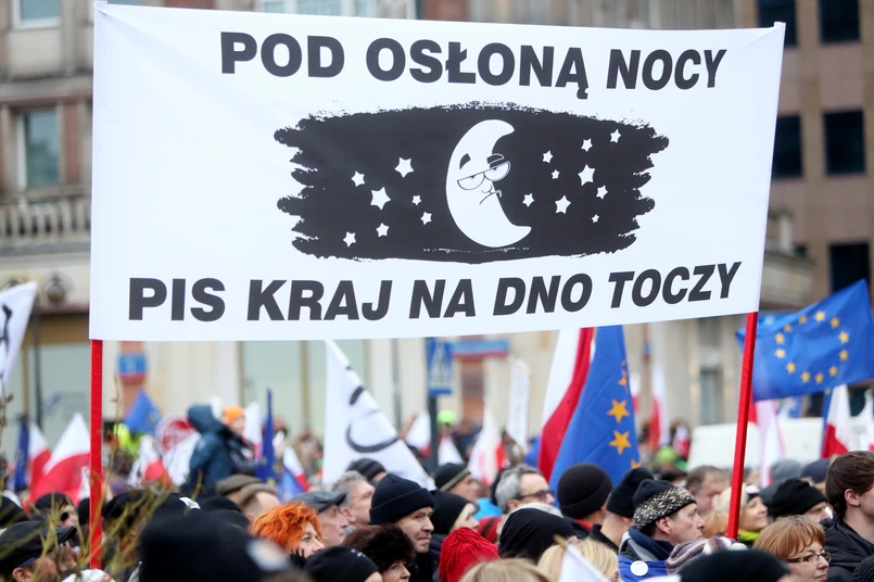 Kilkaset osób protestowało też na rynku w Katowicach. "Mamy złotoustego prezesa TVP. On kiedyś w zupełnie innym kontekście powiedział o ciemnym ludzie. Ale panie prezesie TVP, my ciemny lud tego nie kupimy, nie kupimy tego kłamstwa" - mówiła jedna z uczestniczek manifestacji w stolicy województwa śląskiego.