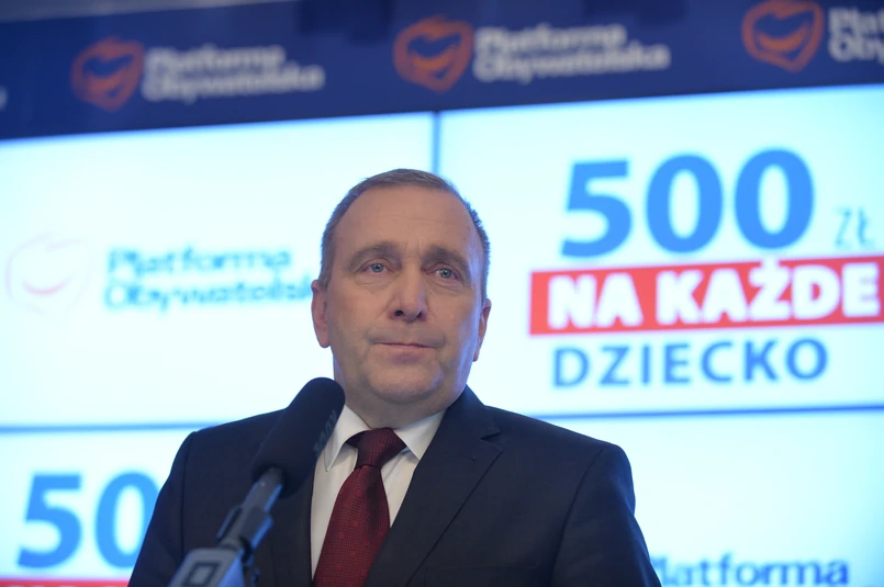 Szef klubu PO powiedział na konferencji prasowej, że projekt jego klubu "zakłada po pierwsze wprowadzenie na każde dziecko 500 zł, jako inwestycji w dzieci". "Nie jako pomoc społeczna, ale jako świadczenie inwestycyjne, rodzinne - od połowy tego roku, także dla dzieci pierwszych, drugich, trzecich, czwartych, w każdej rodzinie" - podkreślił.