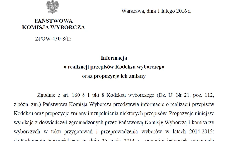 PKW proponuje, by cisza wyborcza obowiązywała tylko w lokalach, w których odbywa się głosowanie tj. wyłącznie wewnątrz budynku, w którym znajduje się ten lokal oraz w odległości np. 100 metrów od tego budynku. Zasugerowano także zmiany dot. protokołowania przebiegu wyborów i sposobów dostarczania sprawozdań między organami, a także list kandydatów w danym okręgu wyborczym.