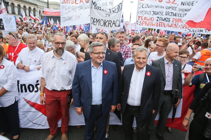 Na początku zgromadzenia tłum odśpiewał "Sto lat" Komorowskiemu, który w sobotę obchodzi urodziny. "Kiedyś, w czasach PRL-u, gdy śpiewało się na imprezach opozycyjnych +Sto lat+, to nigdy nie było wiadomo, czy nie chodzi o sto lat więzienia. Mam nadzieję, że dzisiaj to już jest nieaktualne" - podziękował b. prezydent.