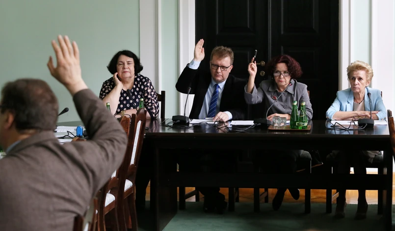 Komisja nie zarekomendowała Artura Andrysiaka i Macieja Siembiedy, zgłoszonych przez kluby PSL i Nowoczesna, natomiast nad drugą kandydaturą zgłoszoną przez PiS, Elżbiety Więcławskiej-Sauk, oraz nad drugą kandydatką PO - Jolantą Wiśniewską - nie głosowała, bo prowadząca obrady przewodnicząca komisji Elżbieta Kruk ogłosiła przerwę.