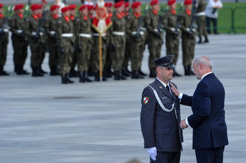Ceremonia, która w ostatnich latach odbywała się w MON, tym razem została zorganizowana na pl. Piłsudskiego. Oprócz kierownictwa MON w uroczystości udział wzięli także szef BBN Paweł Soloch i najwyżsi dowódcy wojskowi.