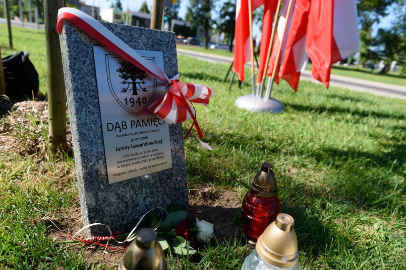 Wśród upamiętnionych osób jest urodzona 22 kwietnia 1908 roku w Charkowie por. rez. Janina Lewandowska, córka gen. Józefa Dowbor-Muśnickiego. Lewandowska była pierwszą kobietą w Europie, która wykonała skok spadochronowy z wysokości pięciu km. We wrześniu 1939 roku dostała się do niewoli sowieckiej. Tam przetrzymywano ją w Ostaszkowie i obozie w Kozielsku. Jak podają źródła historyczne, została zamordowana w kwietniu w Katyniu, prawdopodobnie w dniu swoich urodzin.