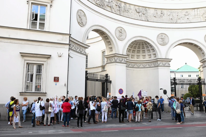 Do ministerstwa późnym wieczorem przyjechała Elżbieta Witek. Jak powiedziała PAP Przewodnicząca Krajowego Sekretariatu Ochrony Zdrowia NSZZ Maria Ochman, podczas kilkugodzinnych rozmów z szefową gabinetu politycznego premier i z ministrem zdrowa Konstantym Radziwiłem, związkowcy przedstawili informację o sytuacji polskiej służby zdrowia, a Elżbieta Witek zadeklarowała, że przekaże je premier Szydło.
