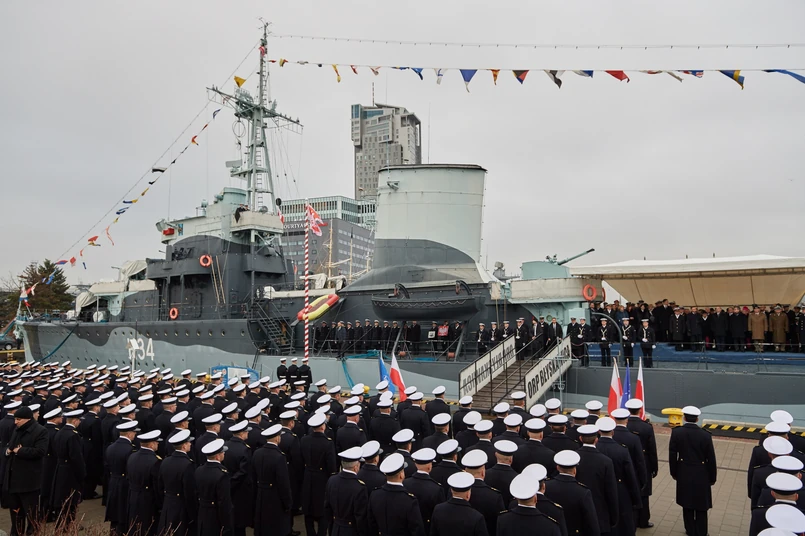 "I chociaż faktem jest, że marynarka polska, wojenna nie jest dzisiaj w takim stanie, jak byśmy oczekiwali - nie ze względu na brak oddania i służby żołnierzy, bo tej polskiemu wojsku i polskiej marynarce wojennej nigdy nie brakowało - ale przez 27 lat zaniedbania, niedoinwestowania, braku istotnej modernizacji naszej floty. Czas najwyższy, aby to się zmieniło" - podkreślił.