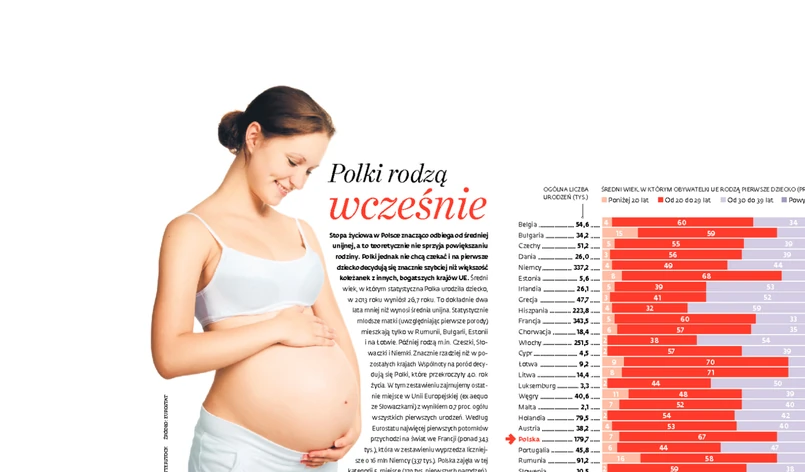 Stopa życiowa w Polsce znacząco odbiega od średniej unijnej, a to teoretycznie nie sprzyja powiększaniu rodziny. Polki jednak nie chcą czekać i na pierwsze dziecko decydują się znacznie szybciej niż koleżanek z innych, bogatszych krajów UE.
