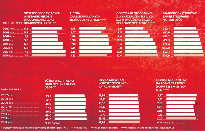 1 Bilans rządów PO, przeciętene dochody i wynagdrodzenia, świadczenia ZUS, PKB na mieszkańca