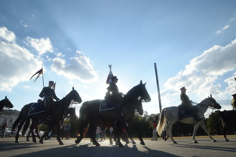 6 Przed południem odbył się Kawaleryjski Apel Pamięci przed pomnikiem Tysiąclecia Jazdy Polskiej. Defilada formacji kawaleryjskich ulicami stolicy. PAP/Radek Pietruszka