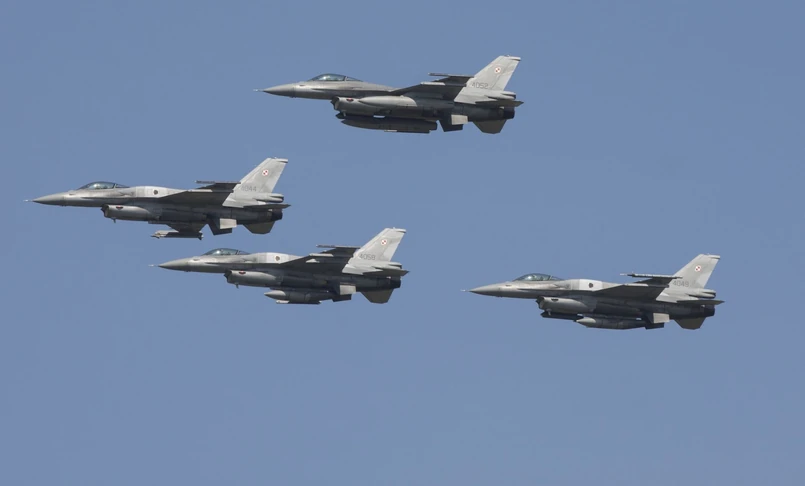Kacprzyk wyjaśnia: polskie myśliwce najprawdopodobniej ćwiczą eskortę maszyn z ładunkami jądrowymi lub ataki na wrogą obronę przeciwlotniczą, by umożliwić lotom z bombami nuklearnymi dotarcie nad cel.