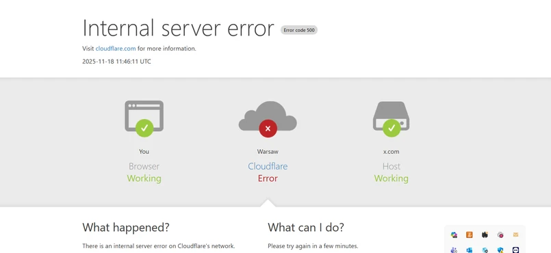 Problemy z działaniem serwisów są globalne. Od rana użytkownicy zgłosili już kilka tysięcy awarii platformy X. Cloudflare, firma zajmująca się infrastrukturą internetową, również ma problemy, które wpłynęły na inne usługi. Nie jest jasne, czy te awarie są powiązane.