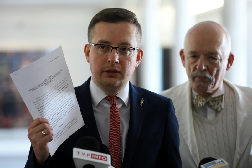 Poseł Konfederacji Robert Winnicki ocenił we wtorek w Sejmie, że głosowanie zwykłą większością głosów w tej sprawie, "zaproponowane przez premiera Mateusza Morawieckiego", jest "bezprawne i nielegalne" i "nie powinno się odbywać w takim trybie".