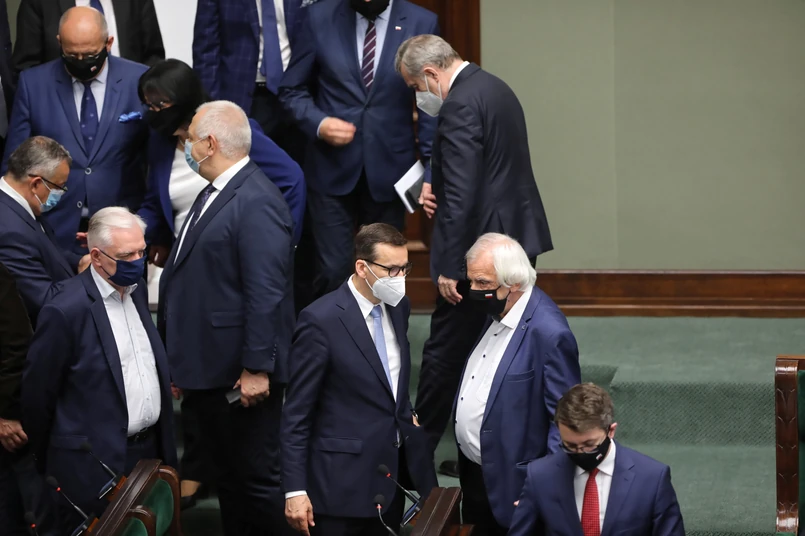 Morawiecki, który zabrał głos w dyskusji podkreślił, że wszystkie trzy wnioski, które na początku czerwca złożył klub KO - o odwołanie wicepremiera i szefa MAP Jacka Sasina, szefa MSWiA Mariusza Kamińskiego i szefa KPRM Michała Dworczyka - "można zbyć jednym, podstawowym argumentem o konieczności przeprowadzenia wyborów prezydenckich".