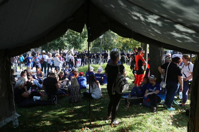 "Białe miasteczko stało się dziś tym, czym chcieliśmy, żeby było. Stało się miejscem spotkań pacjentów i medyków, było dziś miejscem dialogu. Jest tylko jeden problem, w tym dialogu cały czas brakuje przedstawicieli rządu, a przede wszystkim premiera. Czekamy na spotkanie z premierem. Kiedy wreszcie zostaniemy potraktowani poważnie" - mówił na wieczornej konferencji jeden z protestujących.