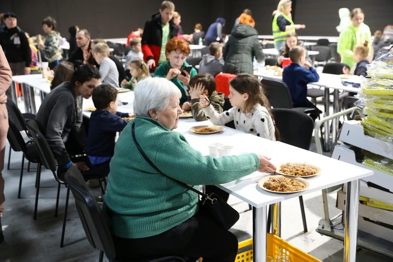 Zaznaczył, że są to przeważnie matki z dziećmi. "Przerażone, zmęczone do granic możliwości. W momencie, kiedy trafiają, nawet w bardzo skromnych warunkach, na ciepłe pomieszczenie, łóżko z pościelą, z wyżywieniem całodobowym, z możliwością sali zabaw dla dzieci, z ogromną górą darów od dobrych ludzi, to w tym momencie im podejmować decyzje, żeby jeszcze dokądś pojechać jest pewnie trudno" - dodał.