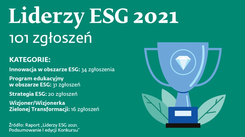 W pierwszej edycji konkursu „Liderzy ESG”, uruchomionej we wrześniu 2021 roku, wzięło udział 85 przedsiębiorstw oraz programów. (Czytaj więcej w raporcie https://www.pwc.pl/pl/publikacje/liderzy-esg-2021-zapoznaj-sie-z-raportem-po-i-edycji-konkursu.html) Do kategorii „Wizjoner/Wizjonerka Zielonej Transformacji” zostało zgłoszonych 16 kandydatur. Laureatów konkursu, których wyłoniono w trzech kategoriach – strategia, innowacje i edukacja – poznaliśmy na początku grudnia ubiegłego roku podczas uroczystej gali.