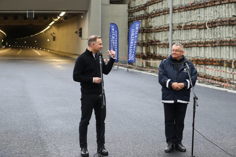 "Ten tunel, można powiedzieć, praktycznie jest już gotowy. Dosłownie za kilkanaście dni zostanie otworzony, uruchomiony, otwarty dla wszystkich kierowców. To jest niezwykle ważny moment, epokowa zmiana" - powiedział Andrzej Duda.