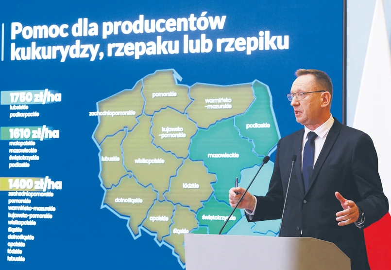Początkowo premier Mateusz Morawiecki trzymał kurs wyłącznie na pszenicę, nie chcąc, by koszty interwencji na rynku były zbyt duże. Ale w rządzie pojawiły się naciski, by mechanizmem wsparcia objąć także inne produkty. Przy czym nie będzie tu gwarancji minimalnej ceny jak w przypadku pszenicy. Rozwiązania będą zależeć od regionu. I tak np. w przypadku kukurydzy czy rzepaku producenci z woj. lubelskiego lub podkarpackiego dostaną 1750 zł/ha, ci z woj. małopolskiego, mazowieckiego, świętokrzyskiego i podlaskiego – 1610 zł, a z pozostałej części kraju – 1400 zł.