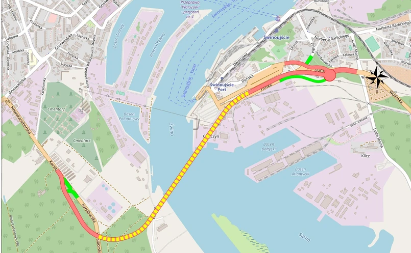 Łączna szacunkowa długość inwestycji to 3,2 tys. m, a długość tunelu drążonego maszyną TBM to 1483,80 m. Maksymalne zagłębienie tunelu to 37,5 m pod powierzchnią terenu i 11 m pod dnem Świny.