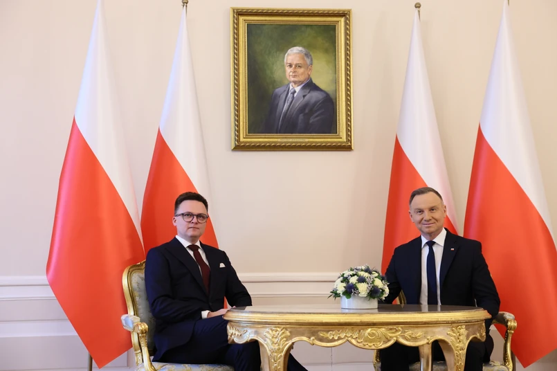 Prezydent Andrzej Duda rozmawiał w poniedziałek z marszałkiem Sejmu Szymonem Hołownią na temat kwestii wygaszenia mandatów polityków PiS Mariusza Kamińskiego i Macieja Wąsika.