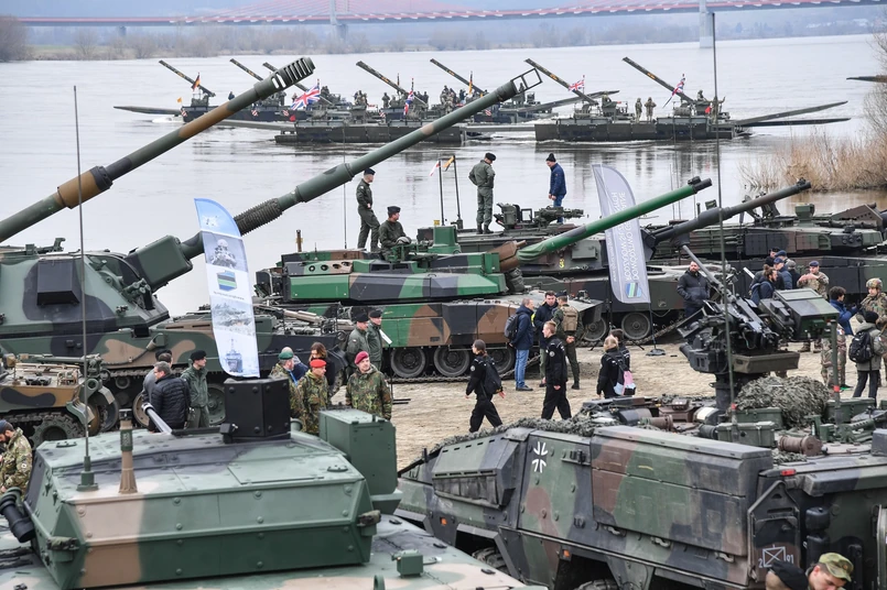 Francja, Niemcy, Litwa, Słowenia, Hiszpania, Turcja, Wielka Brytania oraz Stany Zjednoczone – żołnierze z tych krajów towarzyszyli Polakom podczas przeprawiania się wojska przez Wisłę tuż przed weekendem. To była jedna z bardziej spektakularnych operacji ćwiczeń Dragon-24, w których bierze udział ok. 20 tys. żołnierzy używających 3,5 tys. pojazdów i innych rodzajów sprzętu. Scenariusz zakładał przemieszczenie się z Polski zachodnio-centralnej dwiema różnymi drogami na północny wschód, w okolice Orzysza i poligonu Bemowo Piskie. Po drodze doszło do spotkania z sojusznikami i wspólnych ćwiczeń ogniowych, m.in. na poligonach w Drawsku Pomorskim i Nowej Dębie. Teraz do wykonywania zadań dołączyli żołnierze z batalionowej grupy bojowej NATO (tzw. eFP), którzy na co dzień stacjonują właśnie w Orzyszu.