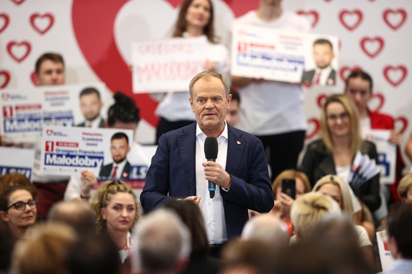 "Nie zrezygnujemy z 500 zł, które otrzymują rodzice drugiego dziecka do ukończenia przez nie 35 miesiąca życia. Rozszerzymy pomoc finansową także na pierwsze dziecko" - powiedział premier w środę na wyborczym spotkaniu w Krakowie.