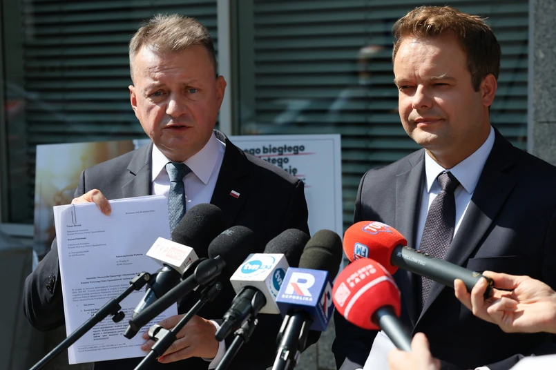 O złożeniu dokumentu w PKW poinformowali na konferencji prasowej posłowie PiS: Mariusz Błaszczak i Rafał Bochenek.