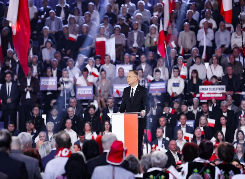 Duda mówił, że Polska potrzebuje prezydenta poważnego i odpowiedzialnego, który będzie rozumiał czym są polskie interesy i który - przede wszystkim - "będzie budował Polskę opartą na uczciwości, a nie Polskę, która gdzieś się uśmiecha, kułakiem przysłaniając usta, i tak naprawdę uznaje, że tylko cynizm, draństwo i cwaniactwo jest sposobem na życie".