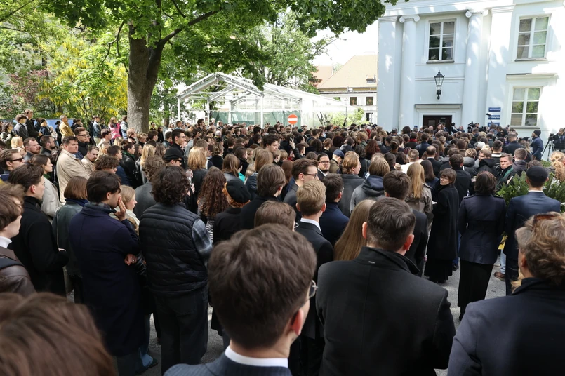 Podkreślił, że nie można mówić o tej tragedii, "nie oddając hołdu prawdziwym bohaterom – naszym pracownikom straży". "Pan Tomasz zareagował pierwszy – bez wahania, bez broni, z gołymi rękami próbował ratować koleżankę. Wszedł między ofiarę a napastnika, ryzykując własnym życiem" - powiedział kanclerz UW. "Było to czyste bohaterstwo – akt odwagi i szlachetności, który zasługuje na najwyższy szacunek" - ocenił.