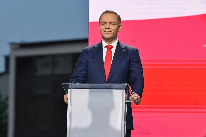 "Myślę sobie, bo to druga debata, na którą już nie przychodzi Rafał Trzaskowski, że sztab Rafała Trzaskowskiego zaczął właśnie w tym momencie produkować grafiki +Rafał Trzaskowski po raz drugi zwycięzcą debaty w Końskich+" - powiedział na początku Nawrocki.