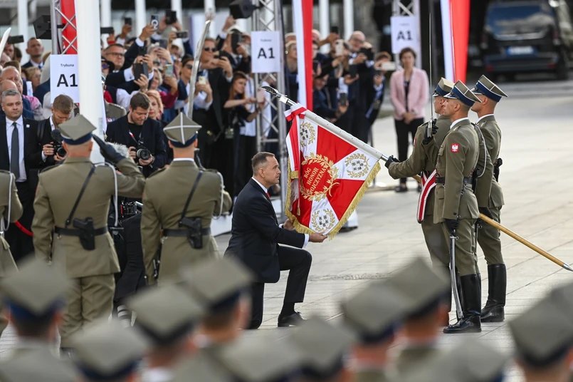 – Nasz system immunologiczny, nasz system bezpieczeństwa zaczyna się w duszy prostego żołnierza, który musi być świadomy odpowiedzialności i zaszczytu, jaki przed nim staje – mówił nowy prezydent, nawiązując do słów Józefa Piłsudskiego z 1920 roku.