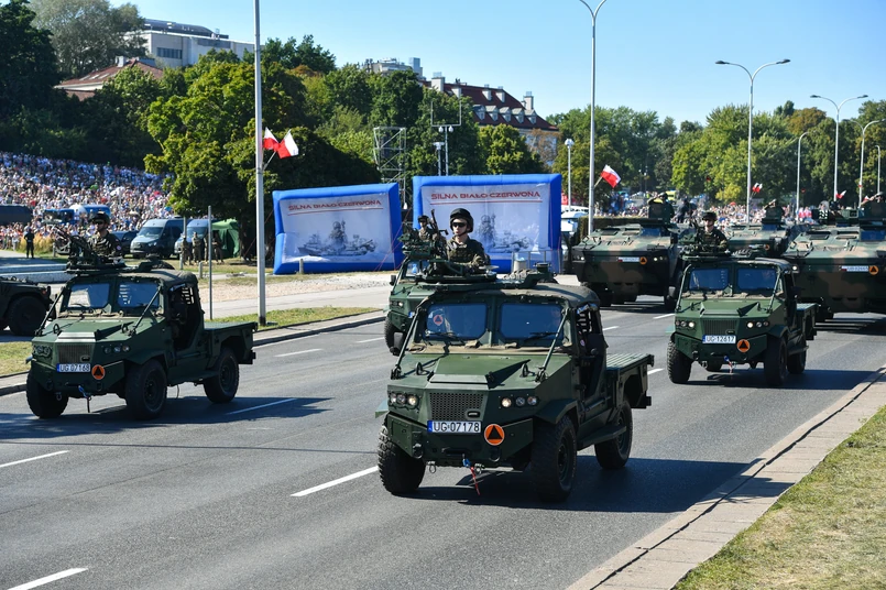15/18 Pojazdy Wojsk Aeromobilnych AERO na defiladzie "Silna Biało-Czerwona" z okazji Święta Wojska Polskiego 2023