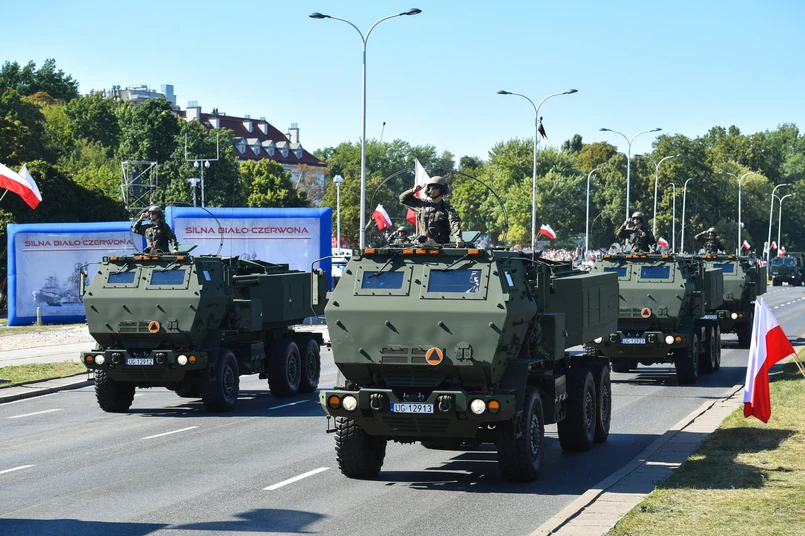 16/18 System "HIMARS" na defiladzie "Silna Biało-Czerwona" z okazji Święta Wojska Polskiego 2023