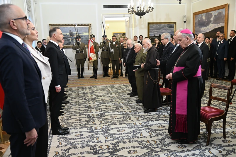 3/22 Andrzej Duda i odznaczony Krzyżem Komandorskim Orderu Odrodzenia Polski, biskup senior diecezji gliwickiej Jan Kopiec na wręczeniu odznaczeń państwowych z okazji Narodowego Święta Niepodległości.