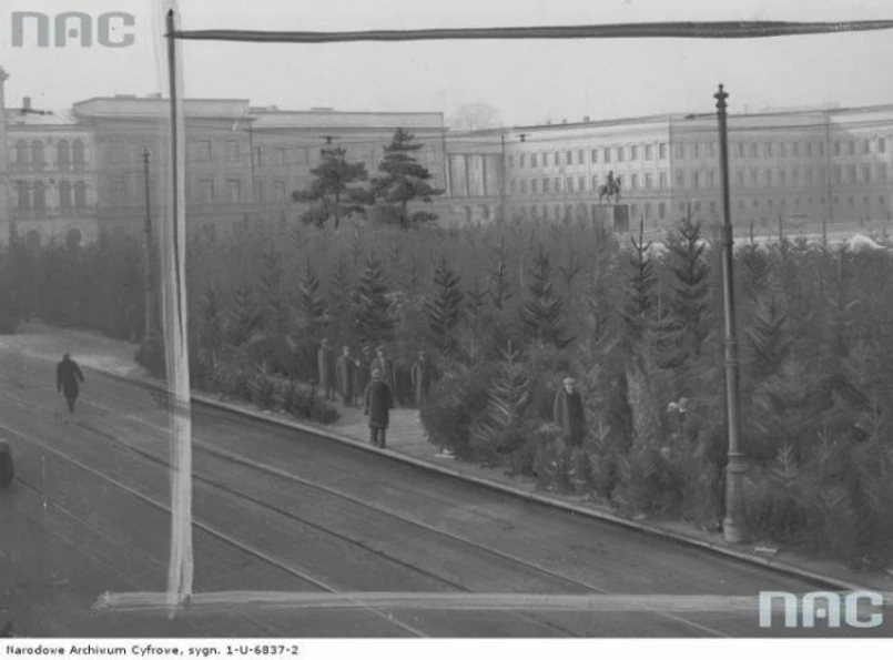1 Choinki sprzedawane na placu Piłsudskiego.
