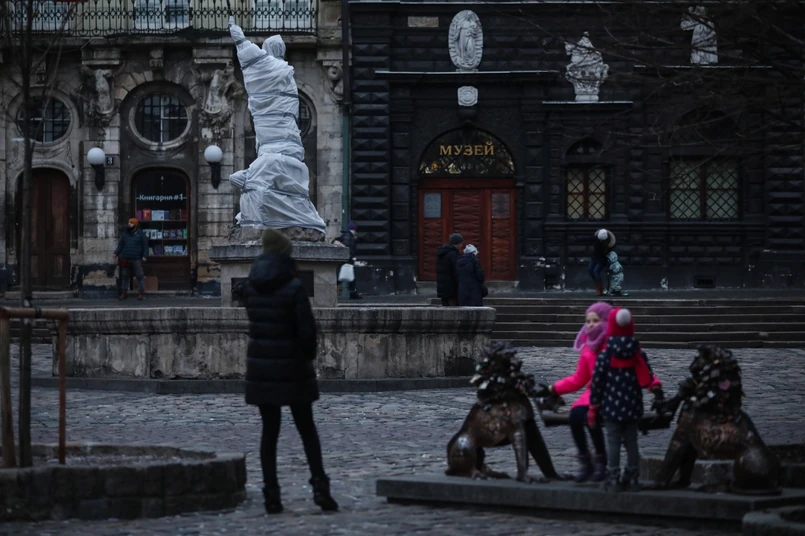 Na Rynku Starego Miasta zabezpieczone zostały między innymi rzeźbione fontanny z XIX wieku stojące w czterech rogach Rynku, których bohaterami są postaci mitologiczne takie jak Neptun, Diana, Amfitryda i Adonis. "To smutny widok, kiedy patrzymy na te pomniki pozawijane w całości, zasłonięte. Miały cieszyć oko, a są przerażające. Komu potrzebna jest ta wojna?" – powiedziała w niedzielę dziennikarce PAP starsza pani spacerująca po Starym Mieście we Lwowie.