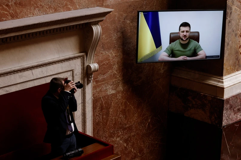 "Tego, co dzieje się na Ukrainie Europa nie widziała od 80 lat, w rosyjskich atakach na Ukrainie giną ocaleni z Holokaustu” - mówił Zełenski.