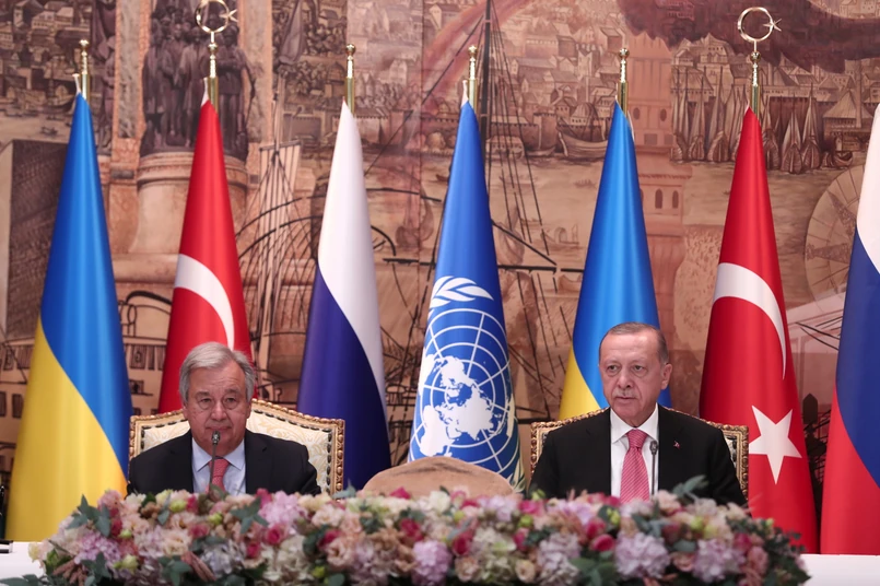 Porozumienie pozwoli na złagodzenie światowego kryzysu żywnościowego i zmniejszy wzrost cen żywności na globalnych rynkach; zyskają na nim kraje rozwijające się i ludzie najbardziej narażeni na głód - podkreślali Guterres i Erdogan.