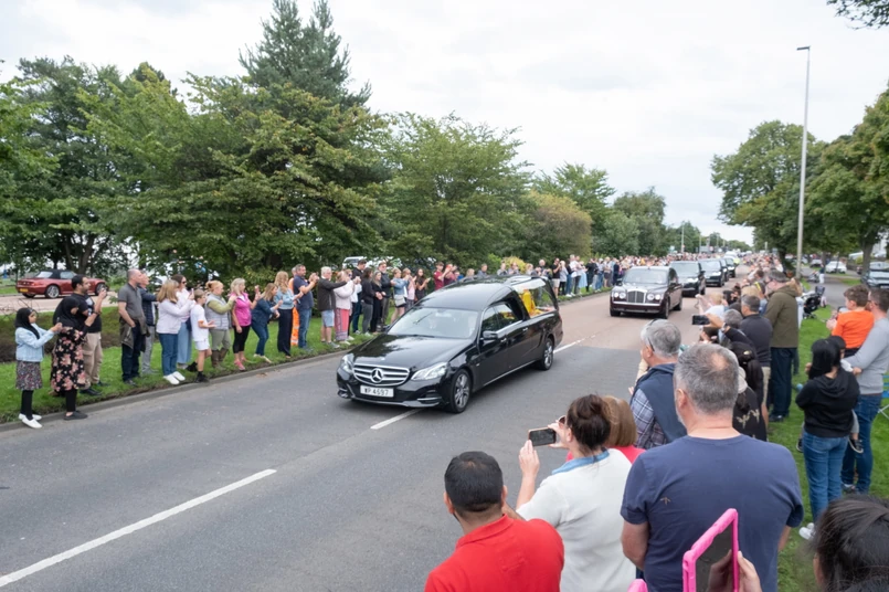 Droga z zamku Balmoral w północno-wschodniej Szkocji, gdzie monarchini zmarła w czwartek po południu, trwała niemal 6,5 godziny i wiodła przez Aberdeen, a następnie wzdłuż wschodniego wybrzeża. Za karawanem wiozącym trumnę jechała jej córka, księżniczka Anna wraz mężem Timothym Laurence'em.
