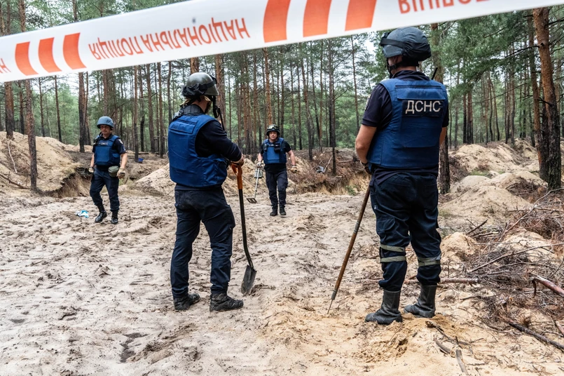 Ekshumacje grobów pod Iziumem trwają. "Mamy szczęście, że ciała pochowano w glinie, w której rozkład nie następuje tak szybko" - powiedział szef prokuratury obwodu charkowskiego Ołeksandr Iljinkow.