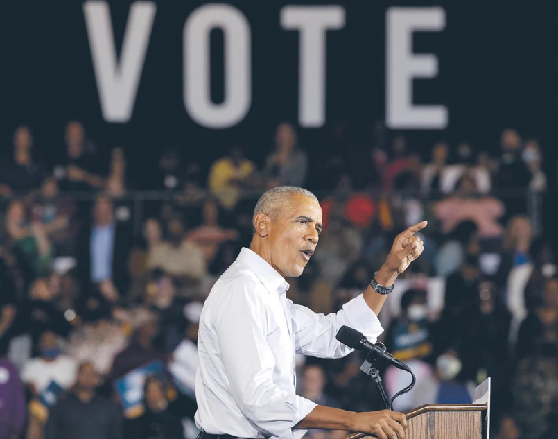 O Obamie po raz pierwszy zrobiło się w kampanii głośno, gdy w połowie października skrytykował lewe skrzydło partii, zarzucając mu nadwrażliwość w sprawach społecznych oraz oderwanie od problemów reszty Amerykanów. Mówił, że demokraci często są „smutasami, sztywniakami”, a „ludzie nie chcą się czuć, jakby chodzili po skorupkach jajek”. Następnie były prezydent ruszył na kampanijny szlak, tym razem koncentrując się już na republikanach, zarzucając im szerzenie teorii spiskowych, podważanie procesu demokratycznego oraz hipokryzję. „Oni nie są zainteresowani rozwiązywaniem problemów. Są zainteresowani rozzłoszczeniem was, a potem szukaniem kogoś do obwinienia” – mówił na wiecu w Milwaukee. Na trzy dni przed wyborami, w sobotę, Obama pojawi się jeszcze w towarzystwie Bidena w Filadelfii, w kluczowej wyborczo Pensylwanii.