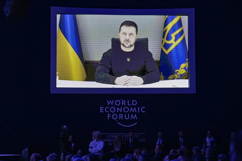 Zełenski zaczął swoje wystąpienie, prosząc publiczność zebraną w Davos o minutę ciszy, by upamiętnić ofiary katastrofy śmigłowca, w której w środę rano zginęło 14 osób, w tym szef MSW Ukrainy Denys Monastyrski oraz by oddać cześć ofiarom wojny na Ukrainie.