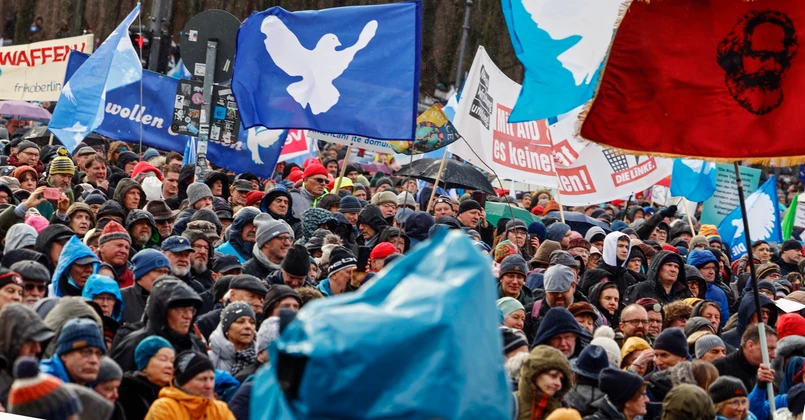 Protest, jak podali jego organizatorzy, został zorganizowany w związku ze złożonymi w pierwszą rocznicę rozpoczęcia rosyjskiej inwazji deklaracjami rządu niemieckiego i sojuszników Ukrainy o zwiększeniu dostaw broni dla Ukrainy i wprowadzeniu nowych sankcji przeciwko Rosji.