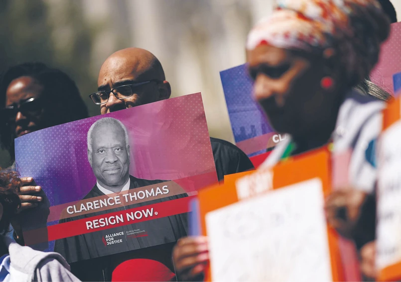Do kontrowersji wokół Thomasa dochodzi w czasie, gdy amerykański Sąd Najwyższy mierzy się z historycznym poziomem nieufności ze strony amerykańskiej opinii publicznej (do tego w znacznej mierze przyczynił się ubiegłoroczny wyrok, w którym stwierdzono, że prawo do aborcji nie jest zapisane w konstytucji, i któremu przeciwna jest większość Amerykanów). Nowy sondaż NPR/PBS NewsHour/Marist, opublikowany w poniedziałek, wykazał, że już 6 na 10 ankietowanych twierdzi, że ma niewielkie lub żadne zaufanie do SN, a dwie trzecie uważa, że sędziowie nie powinni zasiadać w najważniejszym organie władzy sądowniczej w USA dożywotnio. ©℗