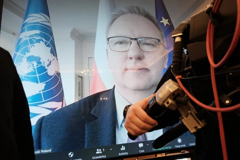 "Agresja Rosji przeciwko Ukrainie jest przykładem używania żywności i produkcji żywności jako broni (...) choć z zadowoleniem przyjmujemy przedłużenie Czarnomorskiej Inicjatywy Zbożowej, uważamy, że tylko zakończenie rosyjskiej agresji i odblokowanie wszystkich ukraińskich portów na wybrzeżu czarnomorskim zapewni eksport zboża z Ukrainy i przywrócenie równowagi na światowym rynku żywności" - powiedział Szczerski. Stały Przedstawiciel RP zabrał głos w debacie otwartej Rady Bezpieczeństwa na temat ochrony ludności cywilnej w konfliktach i bezpieczeństwem żywnościowym.