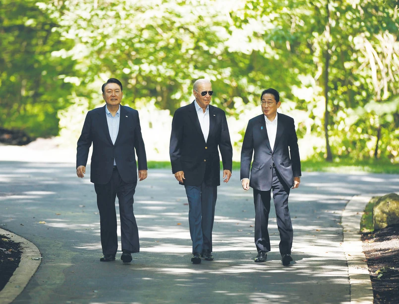 Tak więc w dobie narastającej rywalizacji Chiny–USA Waszyngtonowi udało się przy niezadowoleniu Pekinu doprowadzić do poważnego zbliżenia między największymi sojusznikami Amerykanów w regionie, bo za takie należy uznać Koreę Południową oraz Japonię. Na papierze wygląda to obiecująco – wspólne ćwiczenia wojskowe, konsultacje w trakcie kryzysów czy udostępnianie danych w przypadku rakietowych prób Korei Północnej (która od 2022 r. przeprowadziła ich już ponad 200). To sporo, bo między Tokio i Seulem wielkiego zaufania nie ma, relacje psują sprawy historyczne, sięgające jeszcze 1910 r. i rozpoczęcia okupacji Korei przez Cesarstwo Japońskie. Jeszcze w 2018 r. sprawa sądowa dotycząca wykorzystywania przez Japończyków pracy przymusowej Koreańczyków doprowadziła do sporu handlowego między państwami.