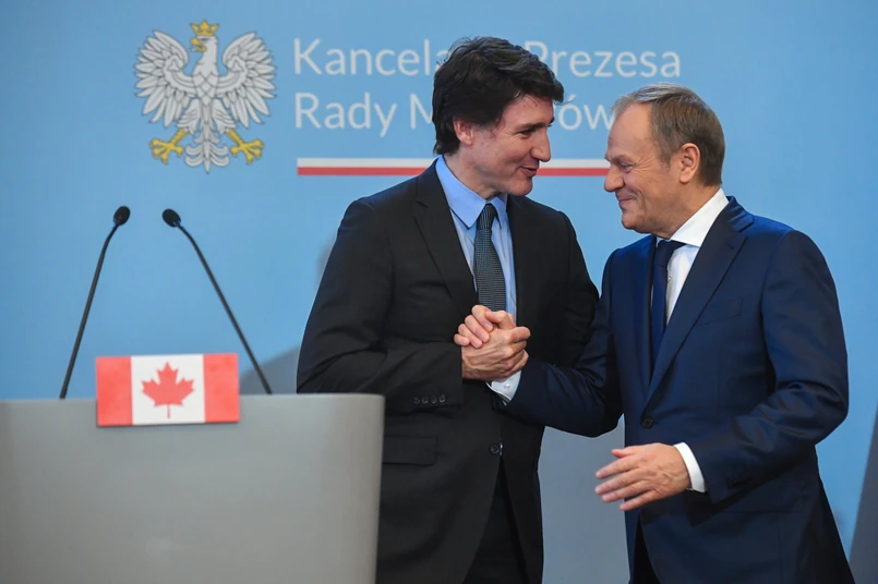 "Mogę z satysfakcją dziś powiedzieć, że Kanada i Polska prezentują identyczne stanowisko, jeśli chodzi o kwestie te najważniejsze, geopolityczne - myślę tu głównie o napaści Rosji na Ukrainę i przyszłość naszego regionu. Premier Trudeau wrócił właśnie z Kijowa. Ja byłem tam trzy tygodnie temu. Mamy podobne wrażenia, podobne intencje. Ukraina potrzebuje naszej pomocy w wojnie z Rosją. Wszystkie państwa Zachodu powinny działać bardziej zdecydowanie. Mamy co najmniej kilka możliwości, aby presję na Rosję zwiększyć i to w sposób bardzo wydatny" - powiedział Tusk po spotkaniu z premierem Kanady Justinem Trudeau.