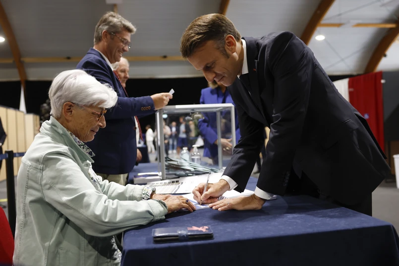 "Macron osiągnął jeden ze swoich zakładanych celów tych wyborów, bo odwrócił dynamikę myślenia o swojej partii i o partii Marine Le Pen (Zjednoczeniu Narodowym). Nie jest już tak, że należy skazywać partię Macrona na kres jej dni, a wręcz przeciwnie" - powiedział. Podkreślił, że obóz polityczny Macrona, choć będzie miał mniej deputowanych w nowym parlamencie, ma szansę według sondaży exit poll na co najmniej 150 mandatów. Jednocześnie - dodał Zerka - "Macron osiągnął to, że pokazał, iż nie jest nieuniknione, że skrajna prawica ma rządzić we Francji".