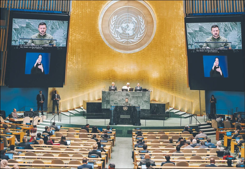 – Nadchodząca jesień zadecyduje o przyszłości tej wojny. Razem z naszymi partnerami możemy wzmocnić nasze pozycje, tak by osiągnąć zwycięstwo, wspólne zwycięstwo na rzecz prawdziwie sprawiedliwego pokoju – taki post zamieścił z prezydenckiego samolotu Wołodymyr Zełenski w drodze do USA. Jego wizyta za oceanem jest dla Ukrainy kluczowa, to prawdopodobnie najważniejsza dyplomatyczna misja Zełenskiego w tym roku. Prócz przemówienia na 79. sesji Zgromadzenia Ogólnego ONZ jej głównym punktem jest dalsze zabieganie o uzyskanie od Waszyngtonu zgody na rażenie celów w głębi Rosji pociskami produkcji amerykańskiej. A także zaprezentowanie najważniejszym politykom w USA swojego planu pokojowego. Wszystko przy zmniejszonym zainteresowaniu mediów, bo każde kolejne odwiedziny Stanów Zjednoczonych przez Zełenskiego przyciągają mniejszą uwagę Amerykanów.